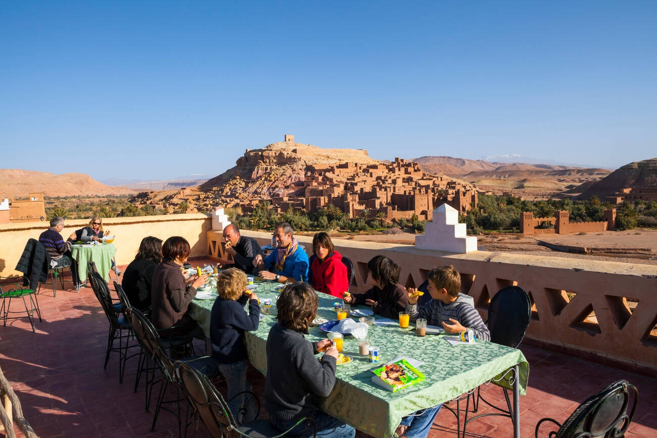 The journey continues to the historic Kasbah of Ait Benhaddou, a fortified earthen settlement recognized as a UNESCO World Heritage Site. This location is widely celebrated as a filming spot, featuring in productions like Gladiator, Alexander, and Game of Thrones. Next, we drive towards Ouarzazate, sometimes called “The Gateway to the Desert.” After taking a break for lunch, we continue our route, passing through the expansive palm groves of Skoura and the Rose Valley, before finally arriving at Boumalne Dades. You will check in for dinner and your overnight stay.